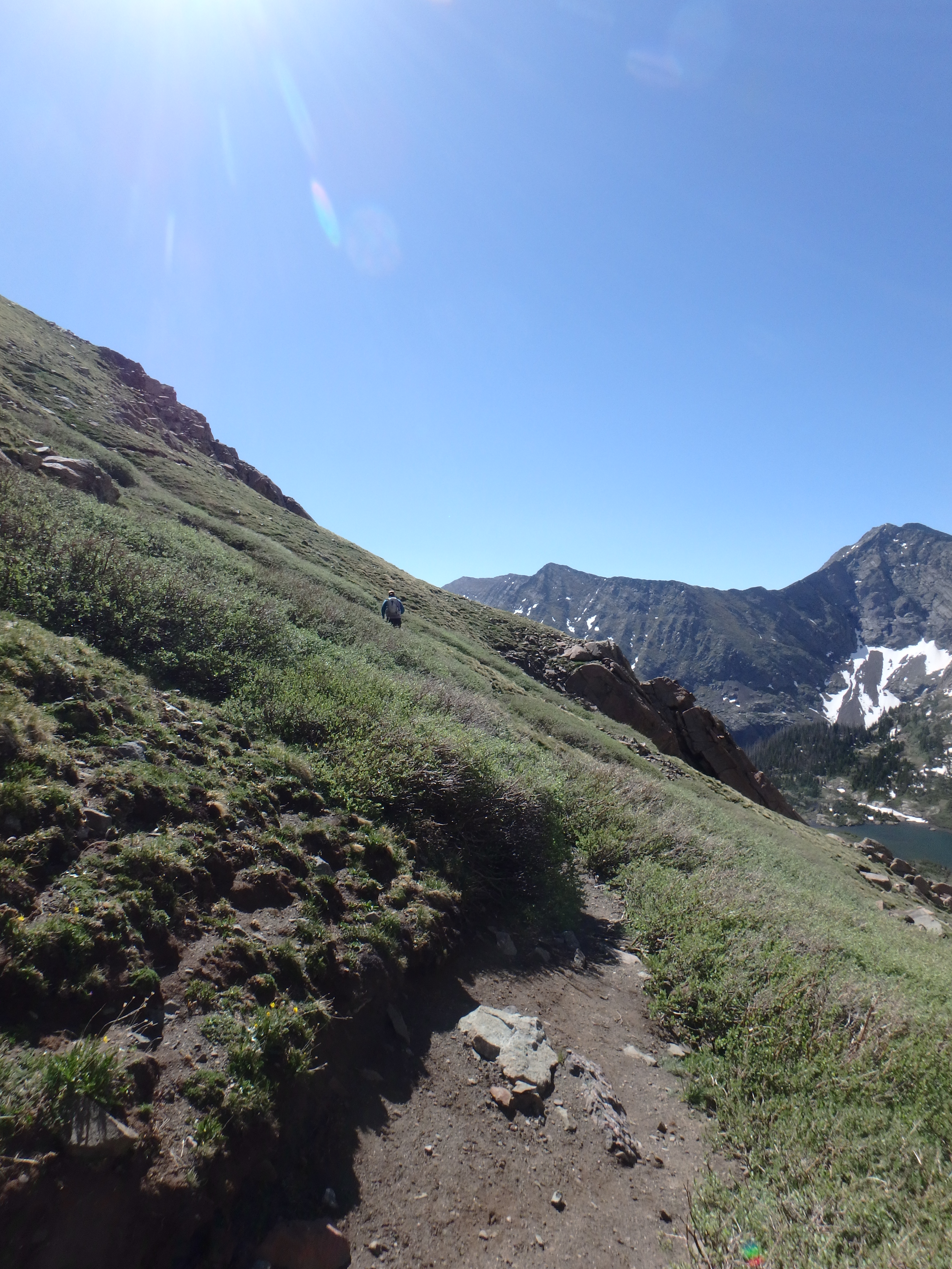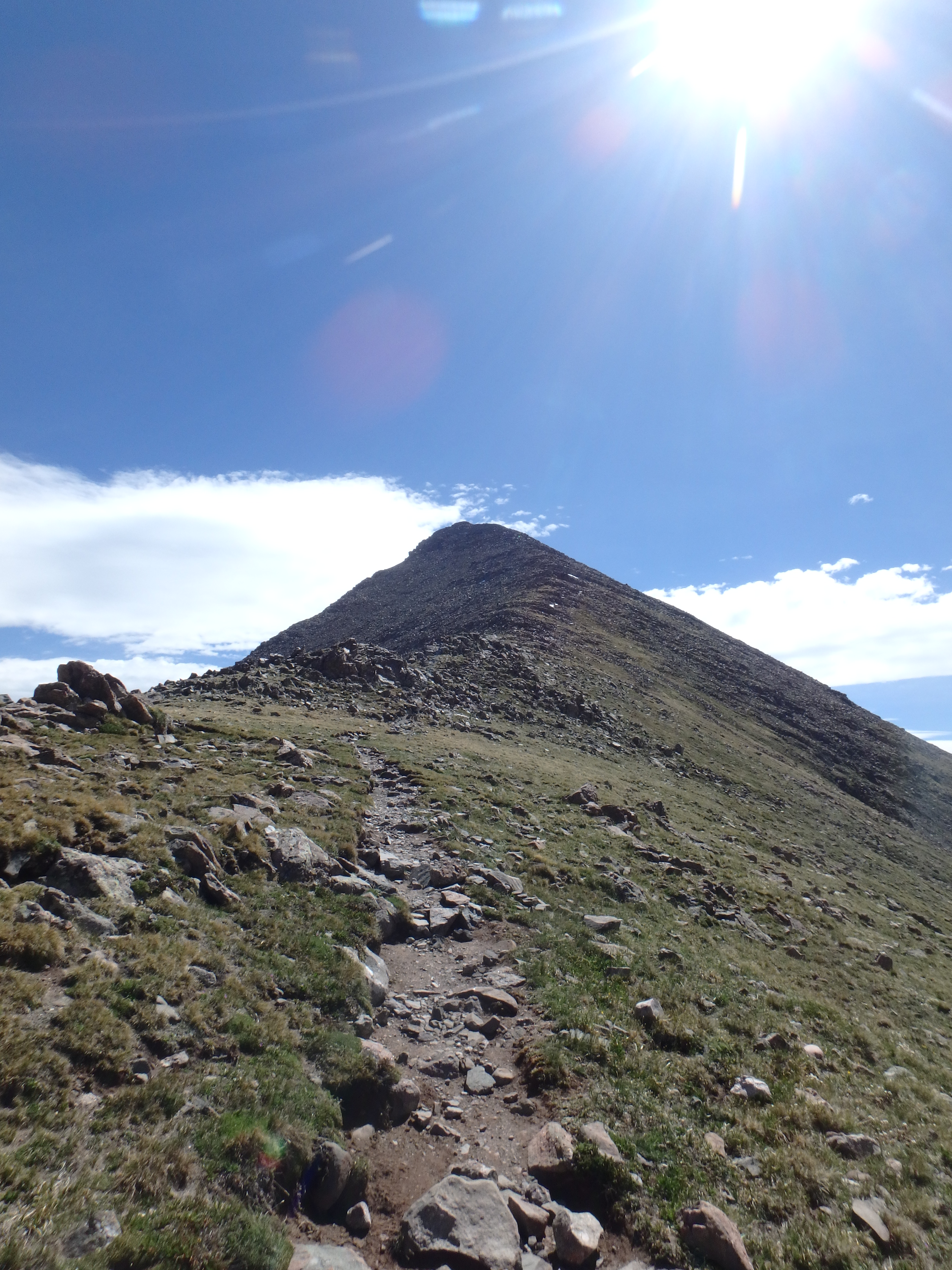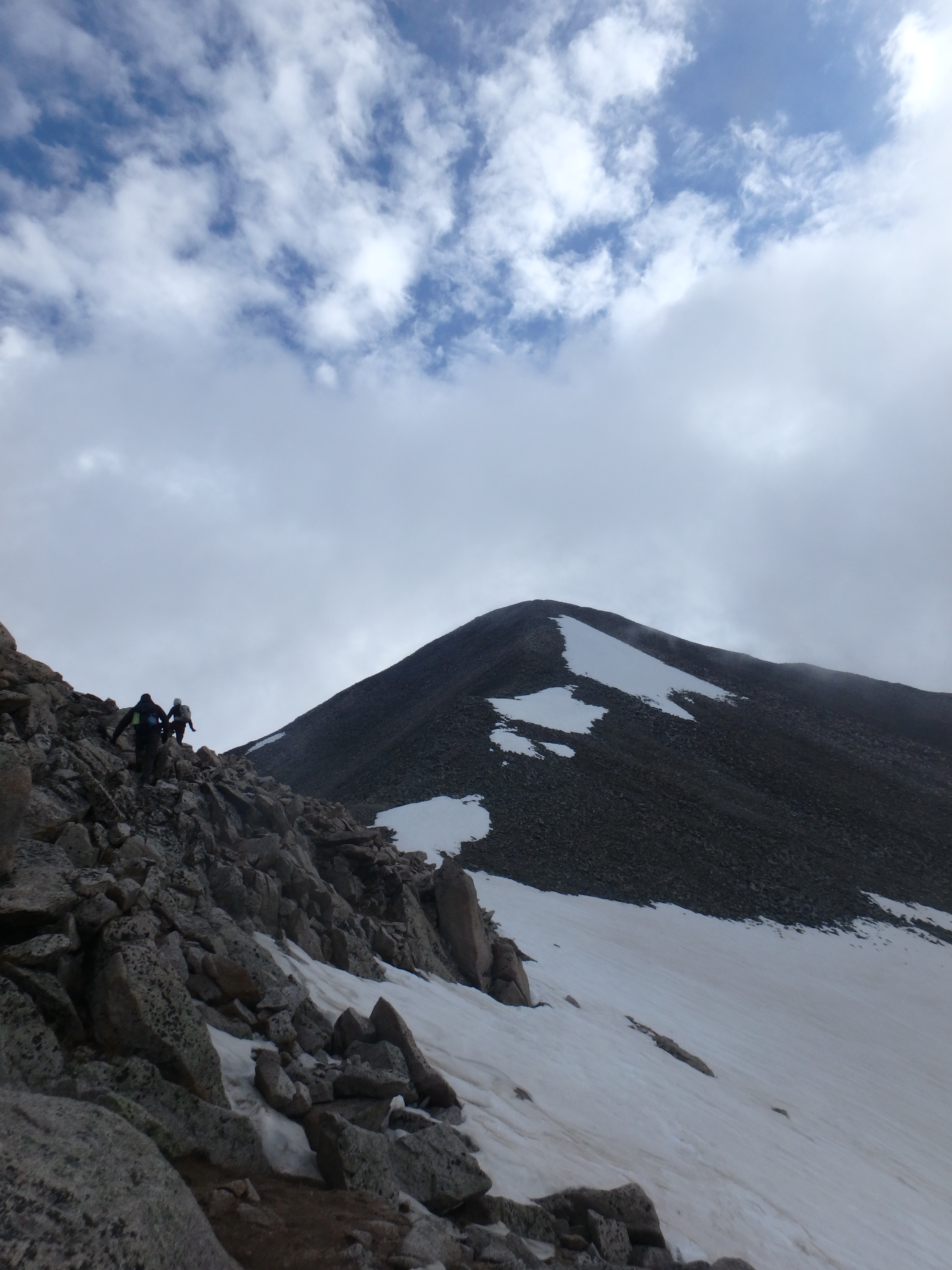 Back to our current 14er, we finished our snacks and headed off. The next part of the hike was composed of many switchbacks along a treeless ridge next to the peak. After this section began the rock scramble.