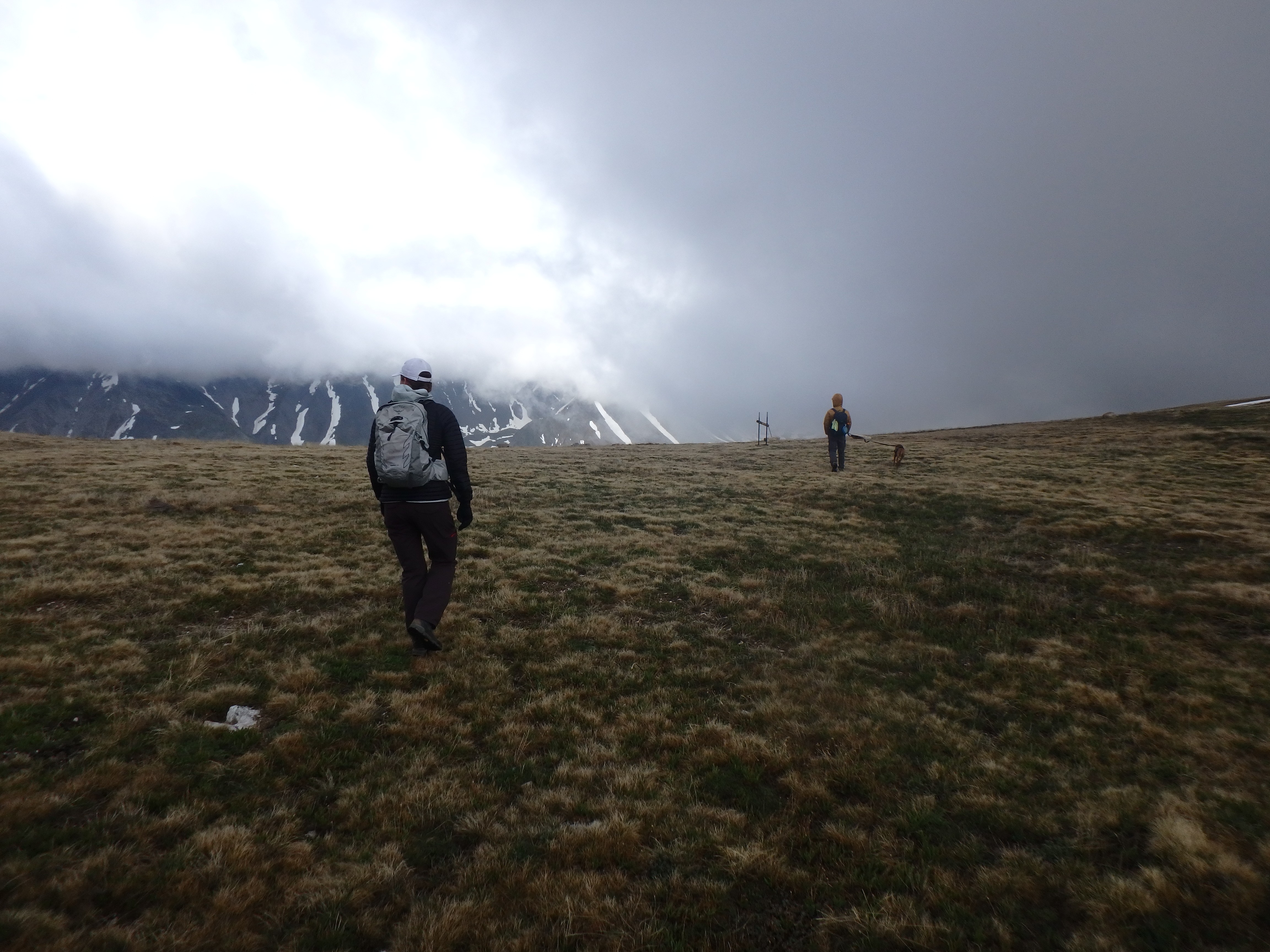 The road led up to a clearing with lots of grass, and offered great views of the surrounding peaks. Unfortunately, the weather wasn’t on our side that morning, and we started to become enveloped by clouds as we climbed higher.
