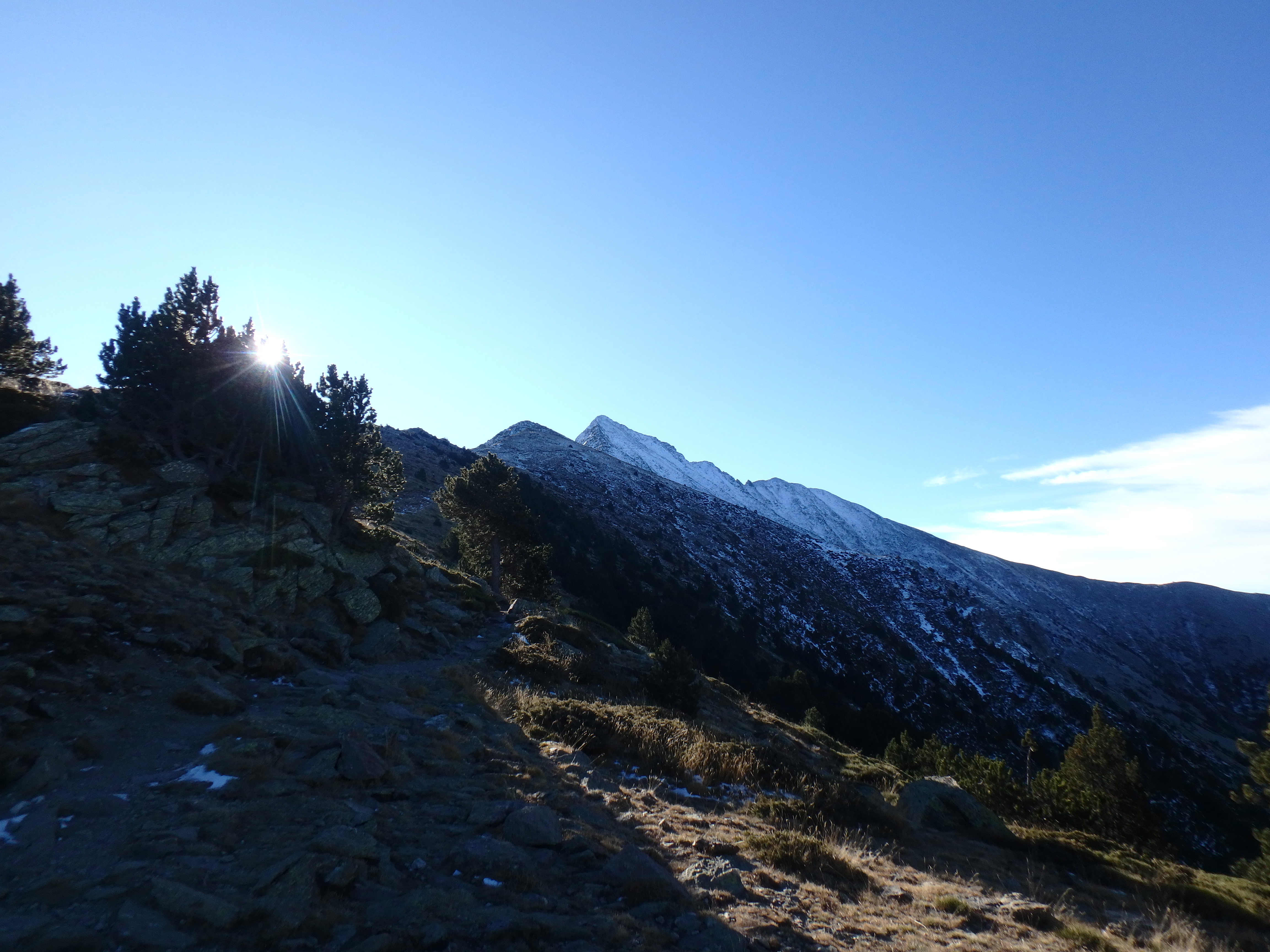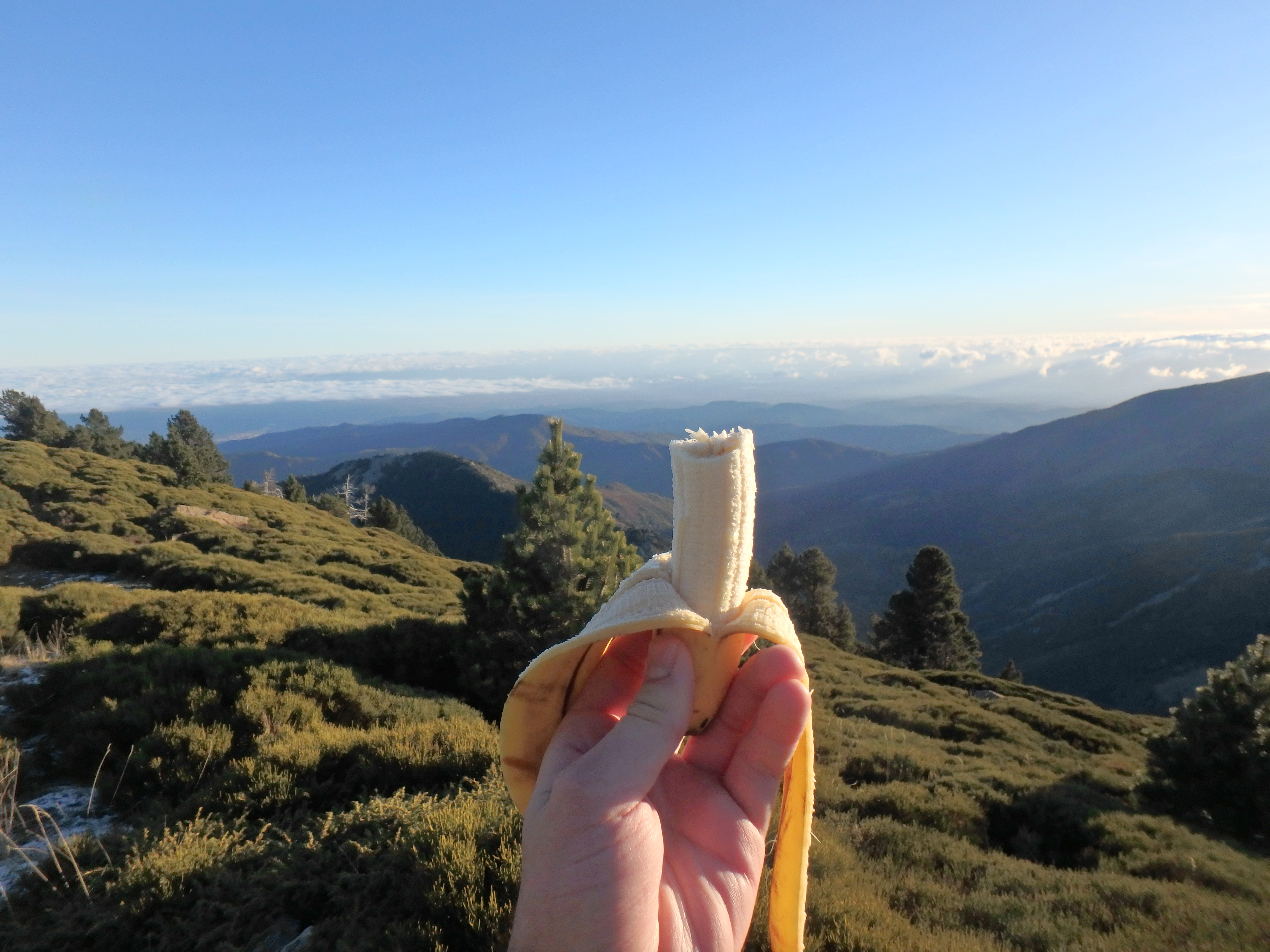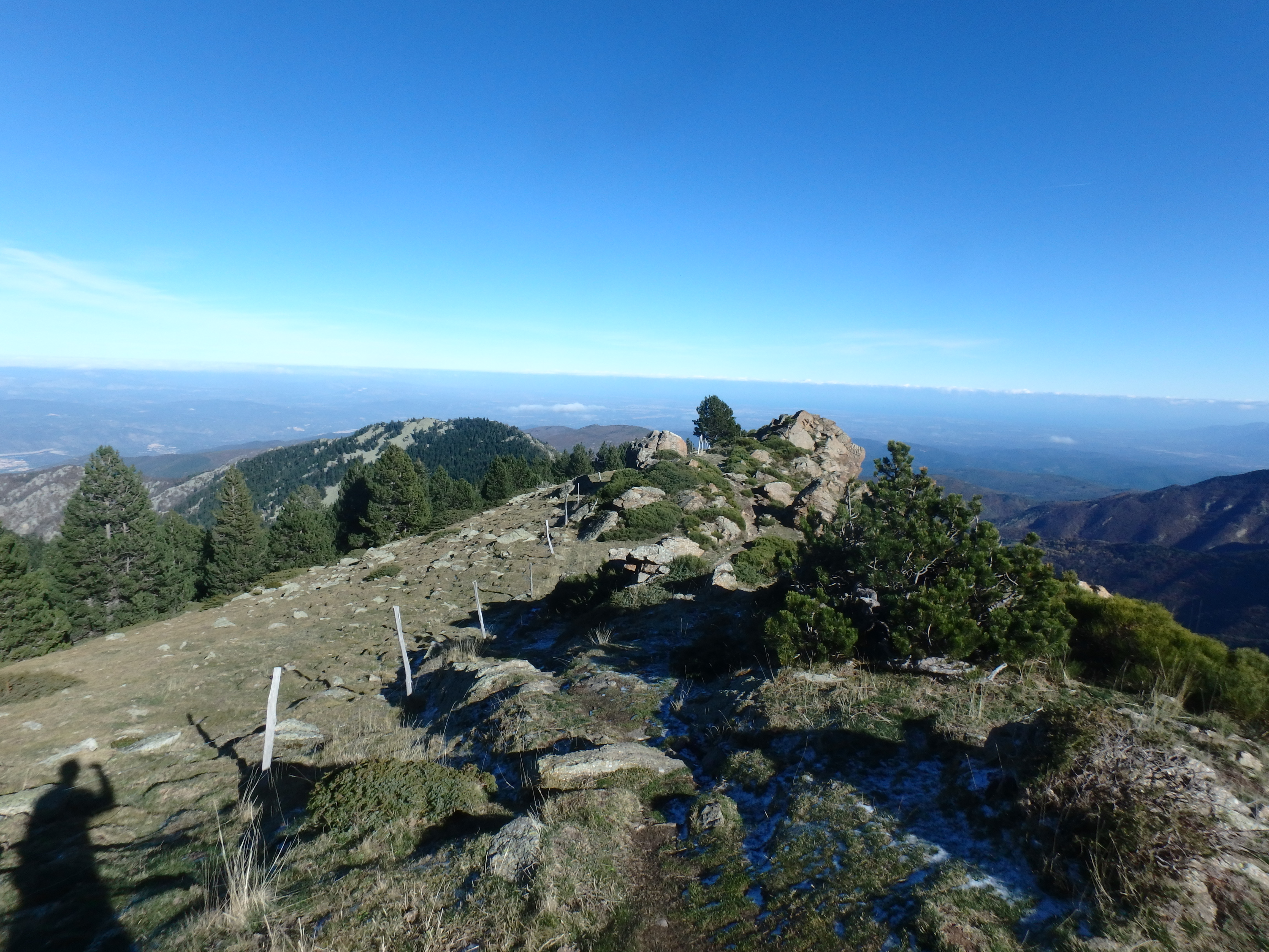 A photo of the Canigou from the top of the farm’s hill on a day prior to my hike. Canigou peak is the one most on the right, with only a white horizontal strip of it visible. Despite the deception, it is taller than the peaks in front of it, those are the ones in the center of the picture.