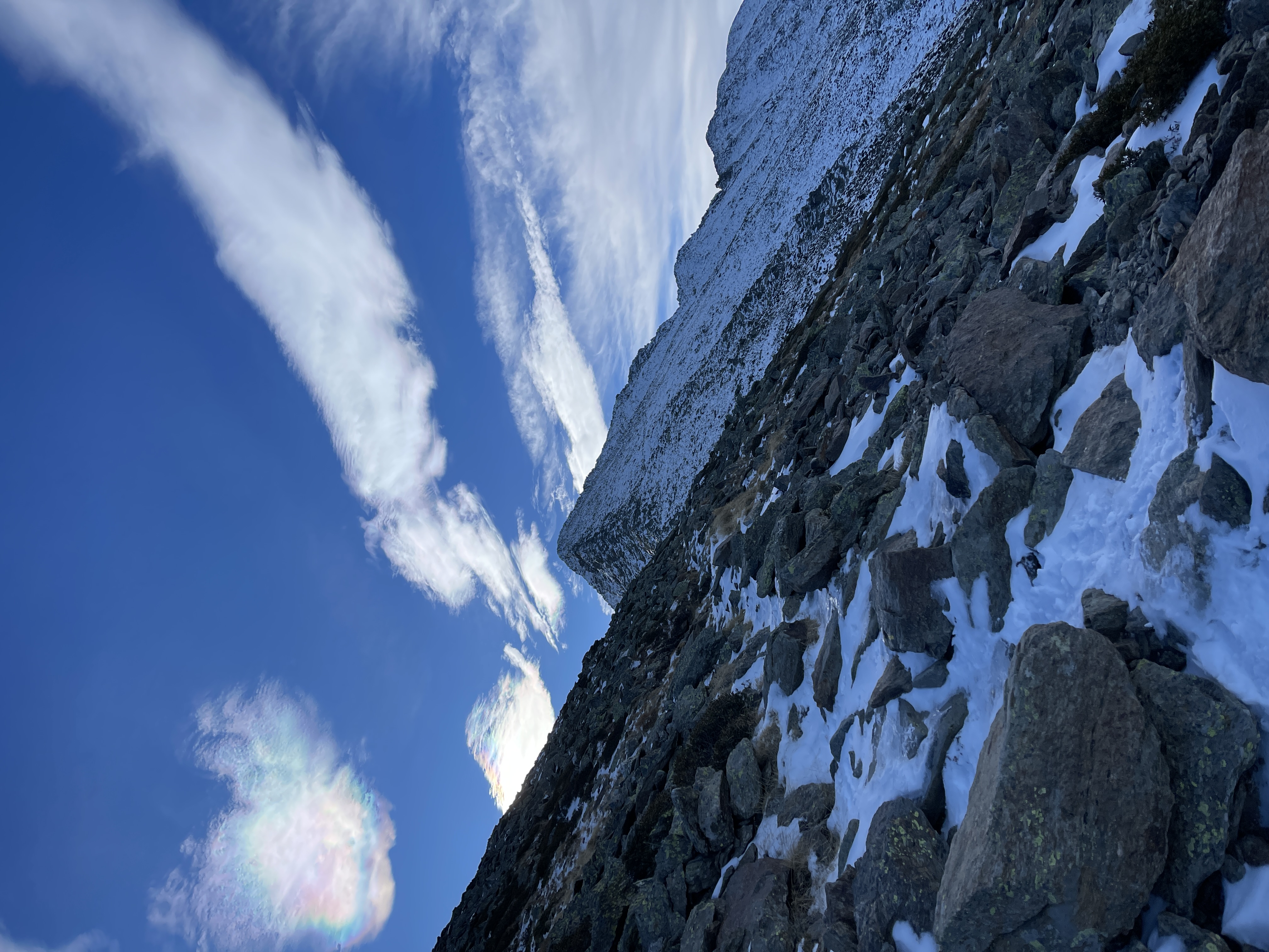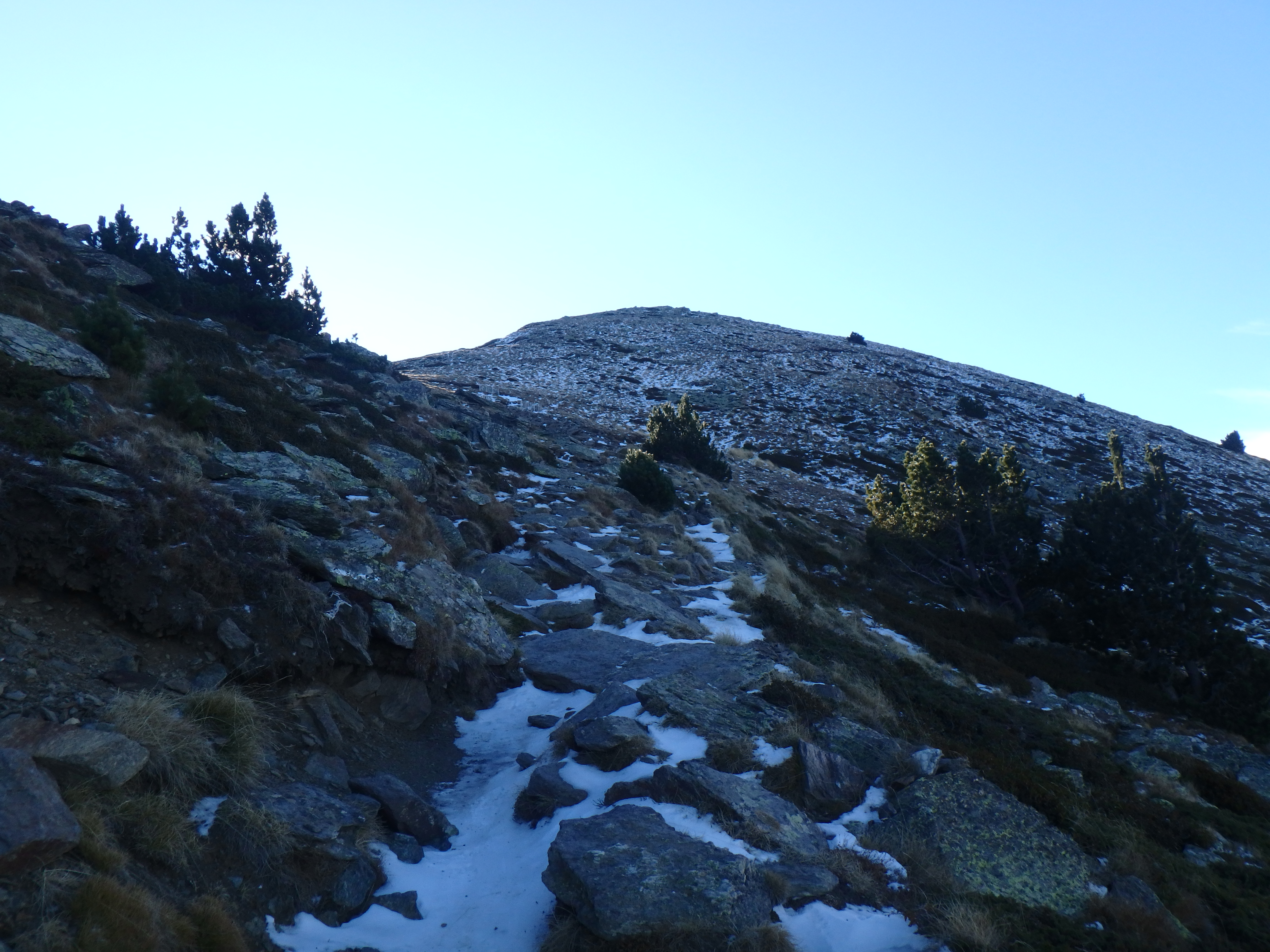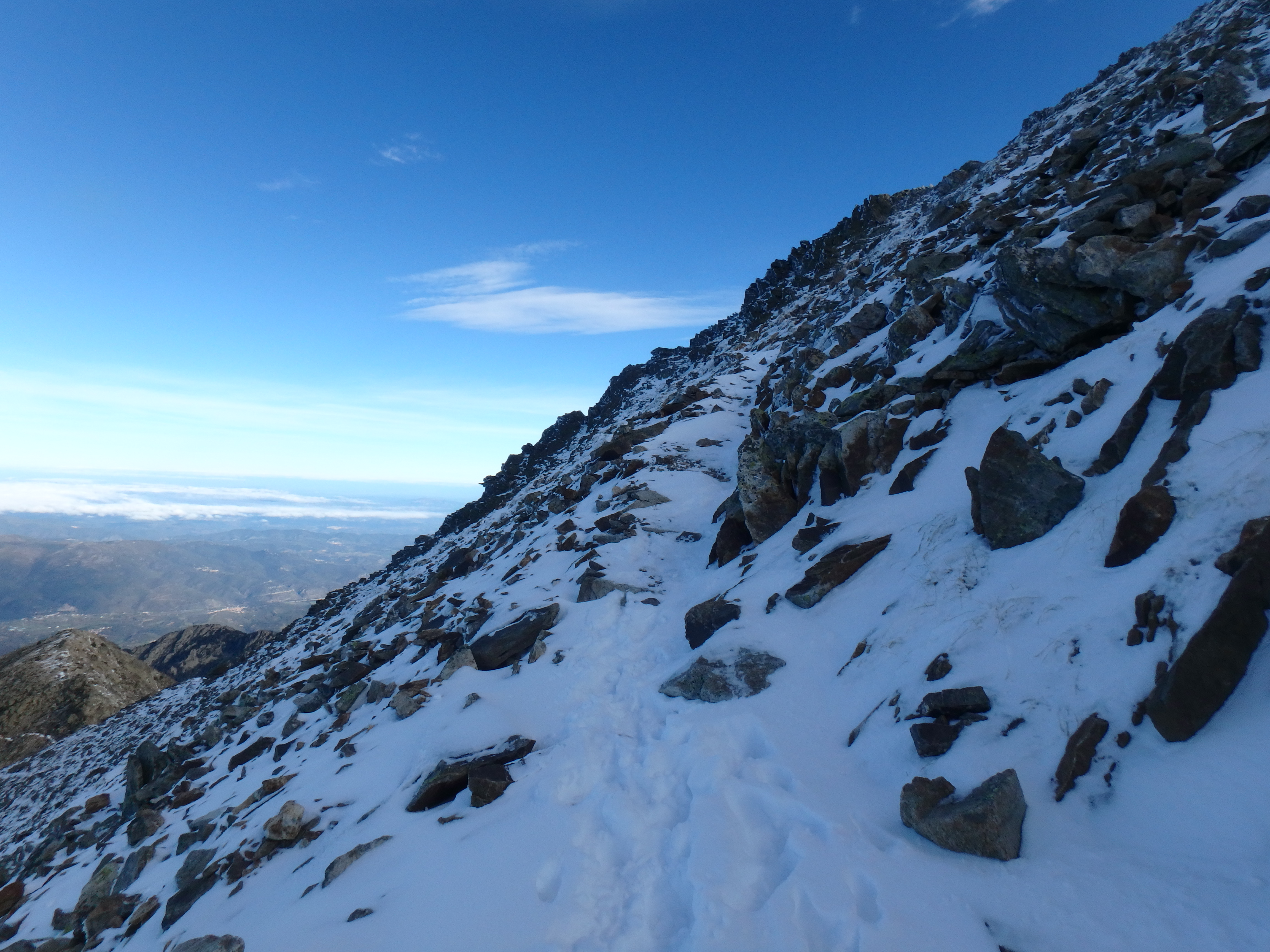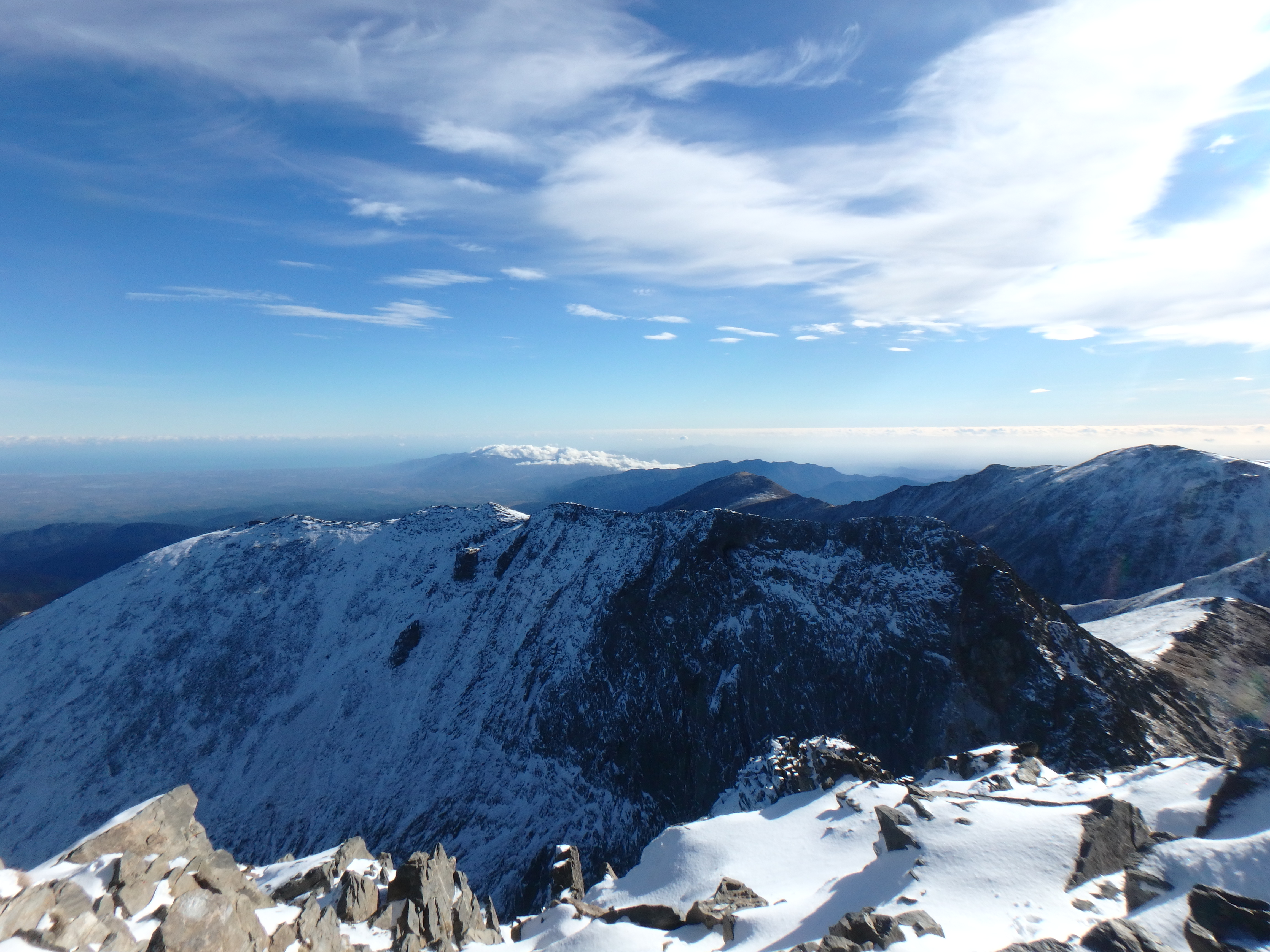 A photo of the Canigou from the top of the farm’s hill on a day prior to my hike. Canigou peak is the one most on the right, with only a white horizontal strip of it visible. Despite the deception, it is taller than the peaks in front of it, those are the ones in the center of the picture.