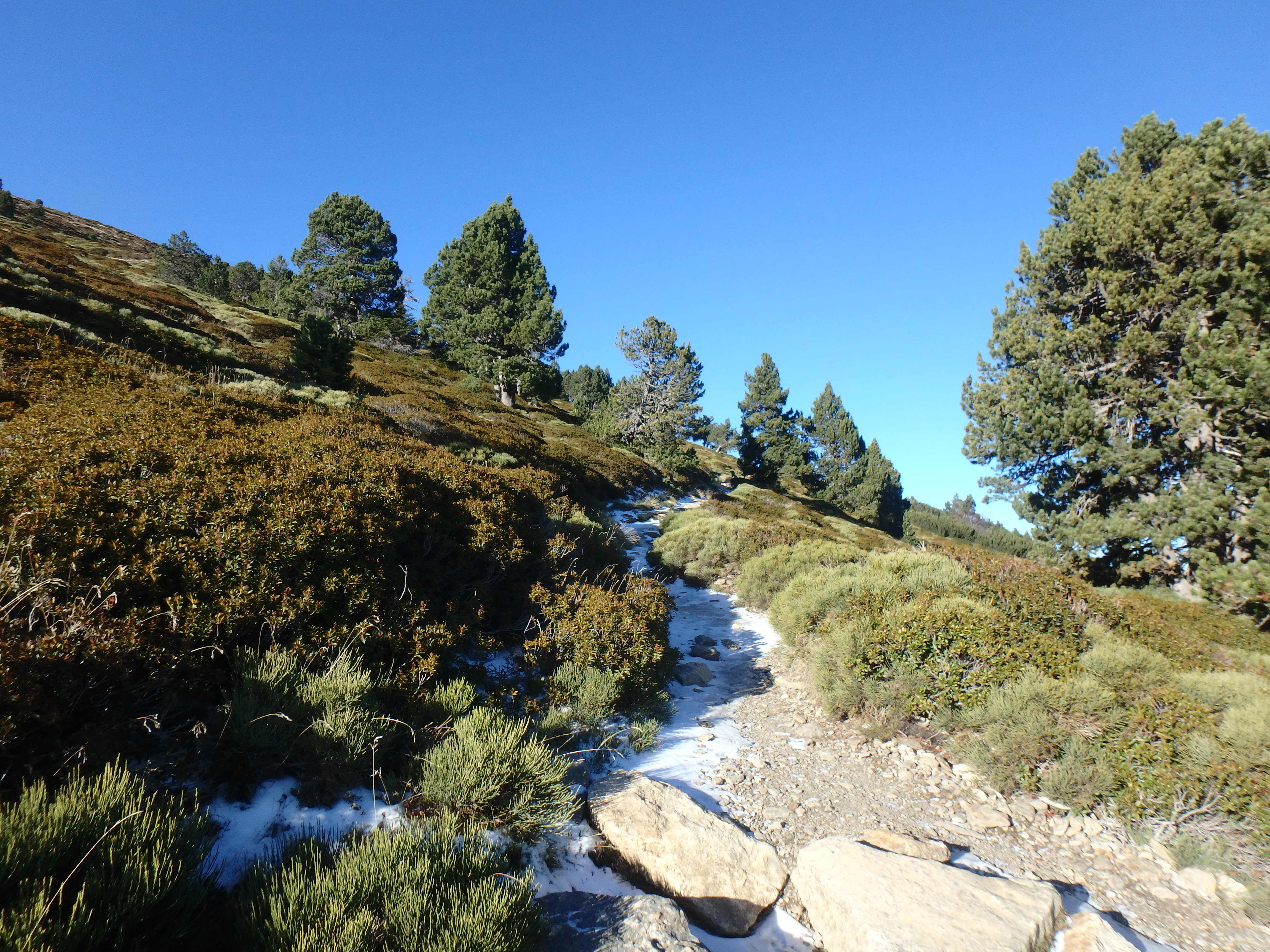 I get over the foothill and arrive at Valmanya. There is no movement or noise from the village as I walk through. After a short walk up another road I get on the actual trail, which begins in a wooded area. It is still dark at this point.